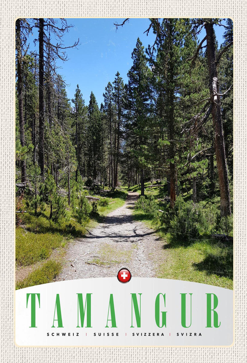 Schild Spruch Tamangur Switzerland Schweiz Berge Wald Weg JW Im Angebot
