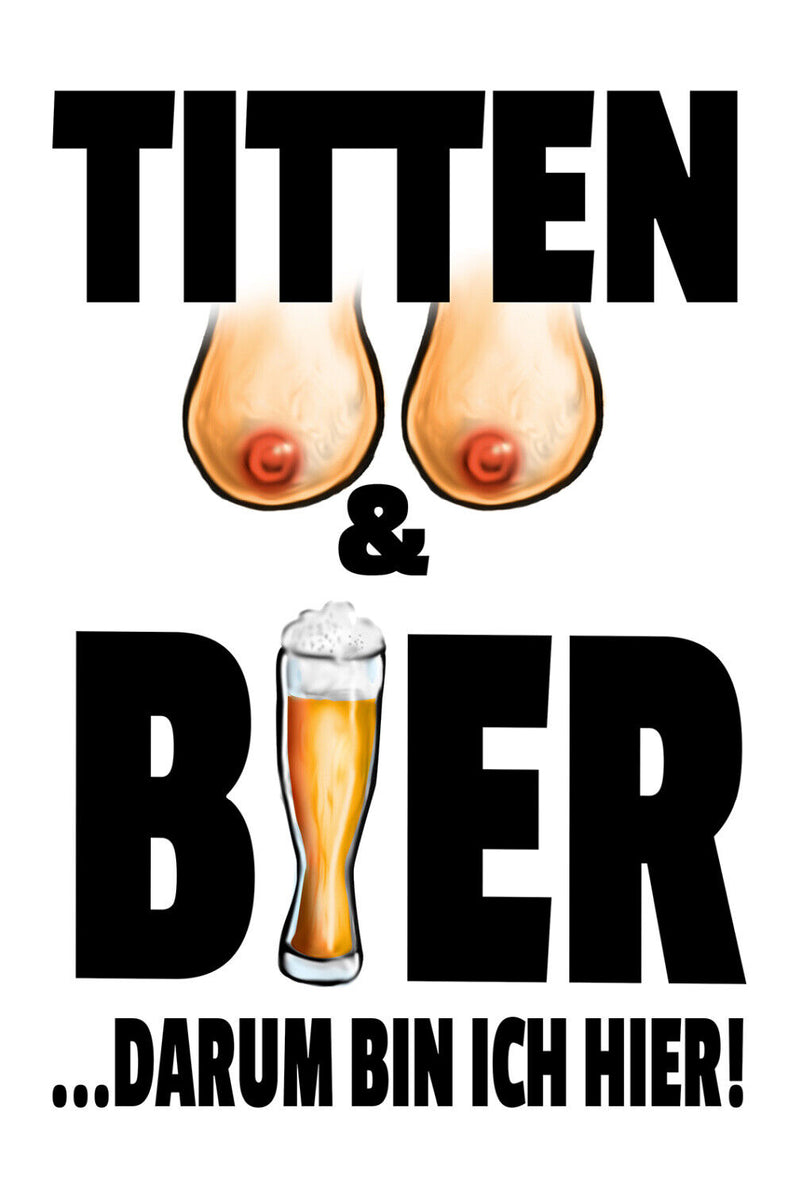 Schild Spruch Titten und Bier Darum bin ich hier Party Alkohol JW Im Angebot