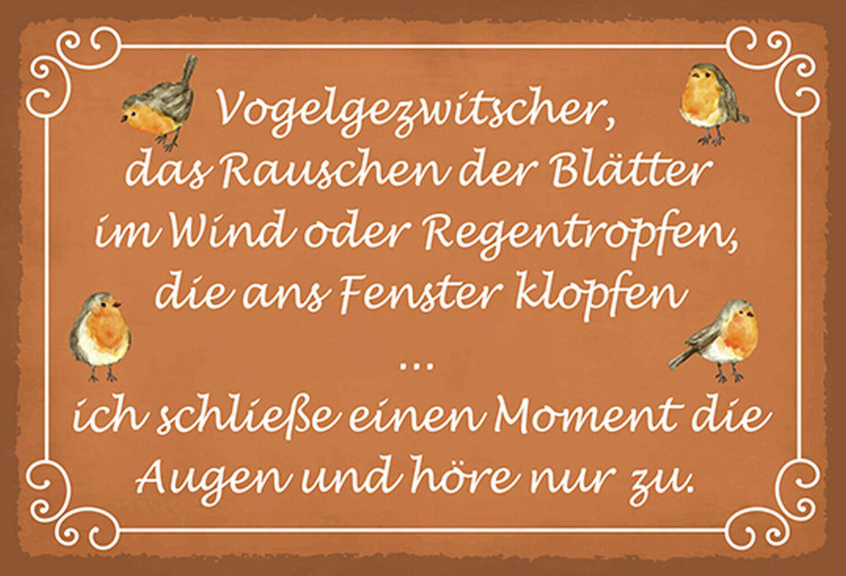 Schild Spruch Vogelgezwitscher Rauschen der Blätter Schließe die Augen Höre zuJW Im Angebot