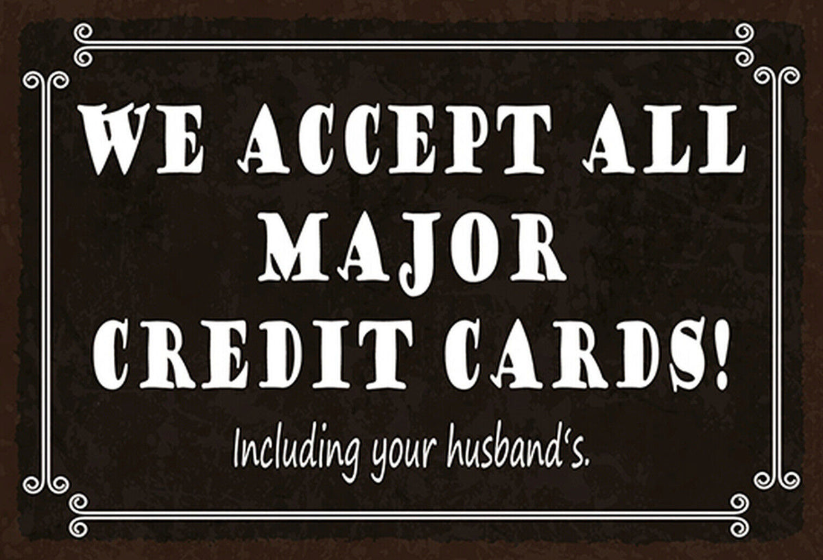 Schild Spruch We accept all your Credit card Wir akzeptieren alle Kreditkarte JW Im Angebot