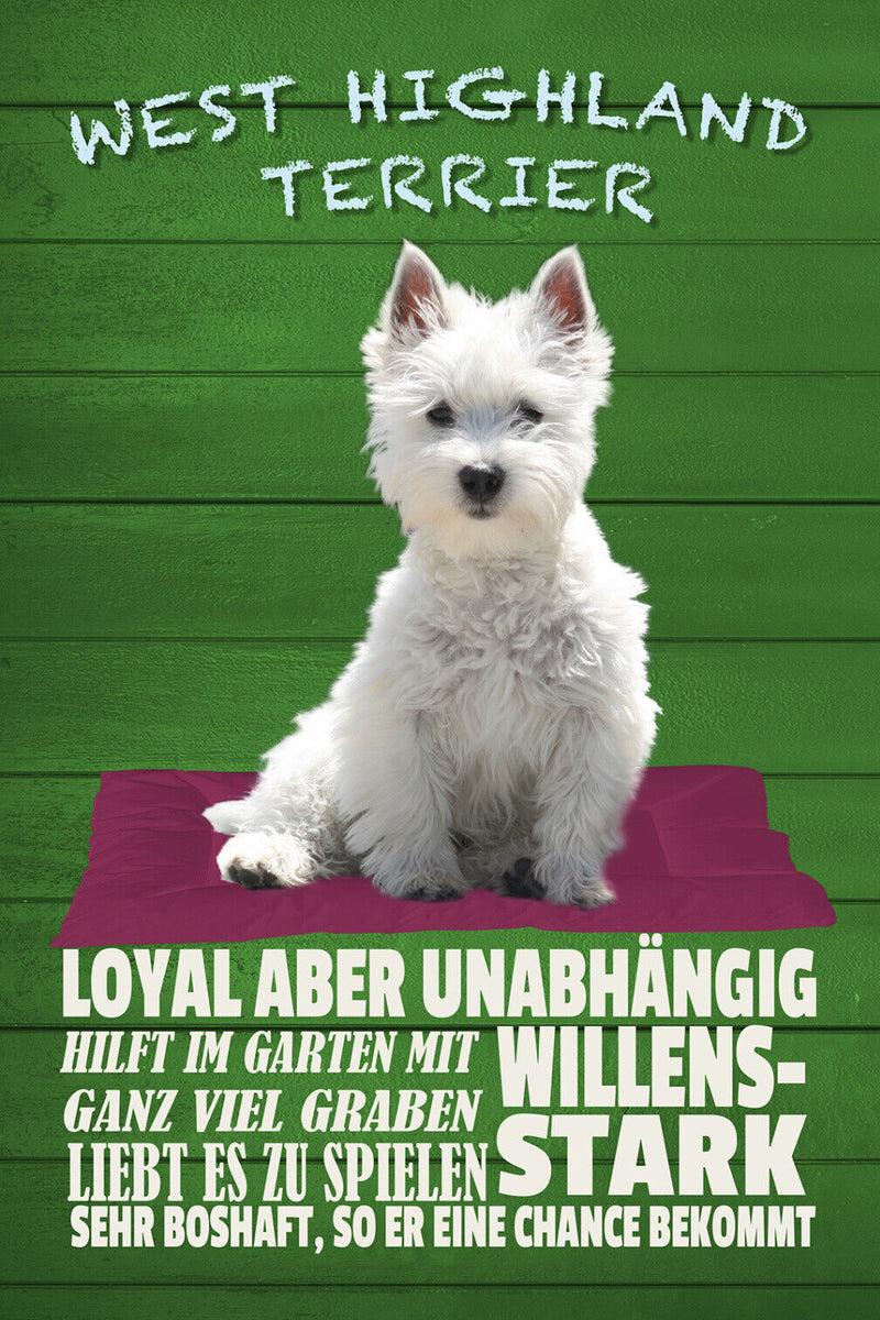 Schild Spruch West Highland Terrier Steckbrief Loyal aber Unabhängig Hund JW Im Angebot