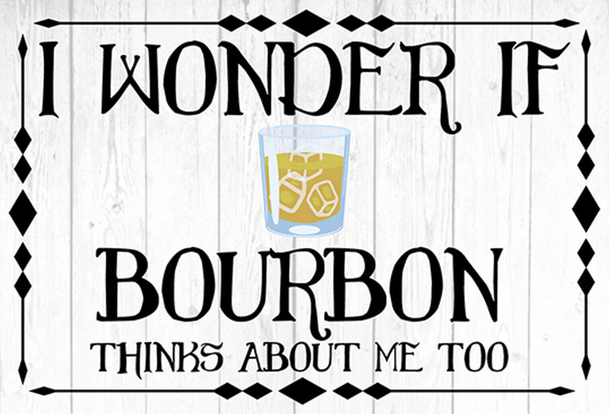 Schild Spruch Wonder if Bourbon thinks about me too Frag mich ob Alkohol JW Im Angebot
