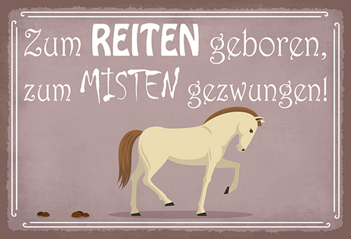 Schild Spruch Zum Reiten geboren Zum Misten gezwungen Pferd JW Im Angebot