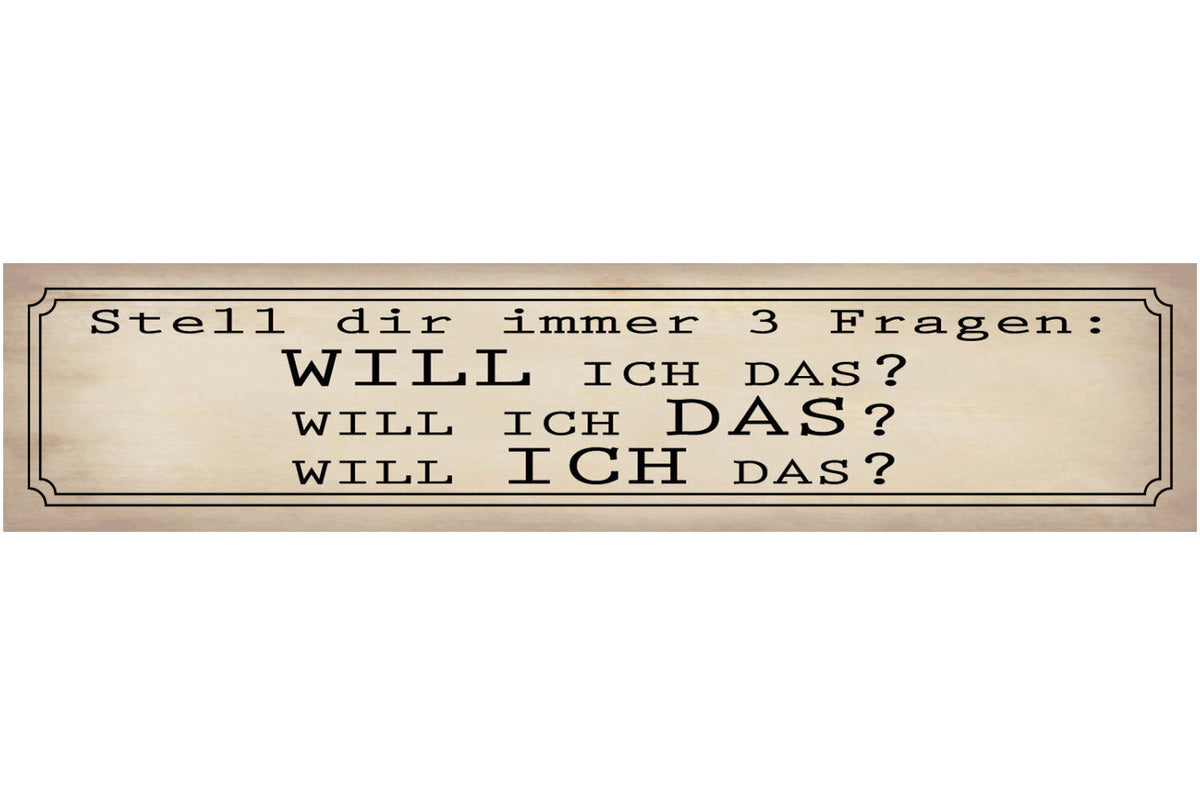 Schild Stell Dir Immer 3 Fragen Will Ich Das Willen Wunsch 46 x 10 Blech od.Holz Im Angebot