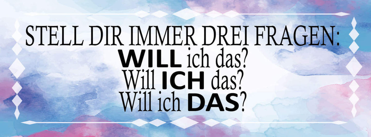 Schild Stell Dir Immer Drei Fragen Will Ich Das Wollen 27x10 Blech od.Holz Im Angebot