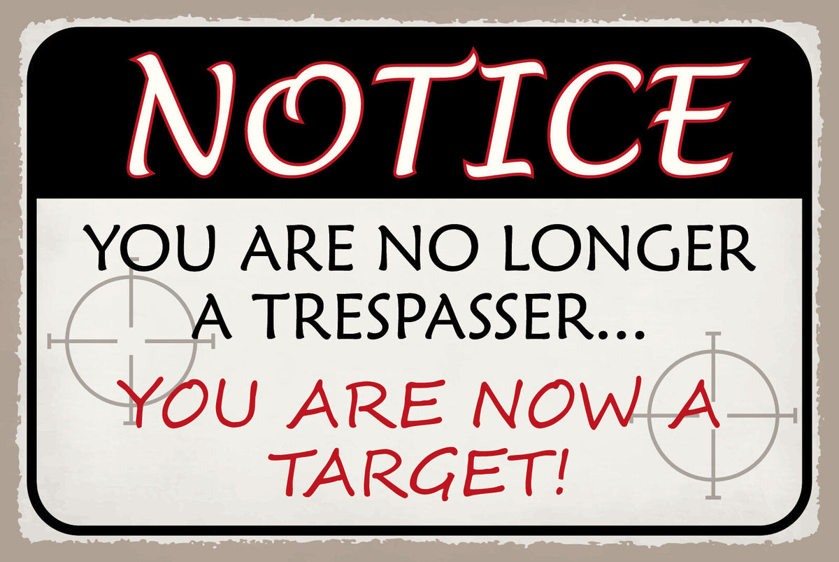 Schild Trespasser Target Eindringling Ziel 12x18 / 20x30 / 30x40 Blech od. Holz Im Angebot