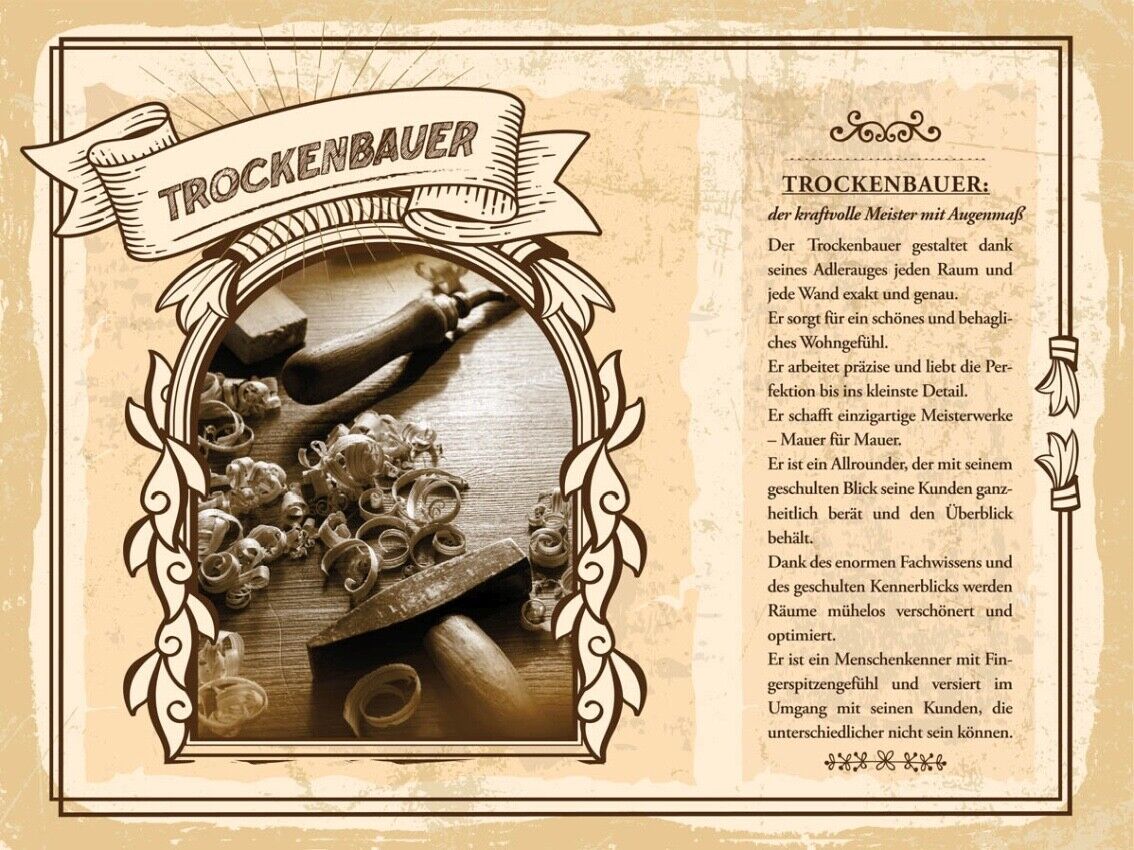 Schild Trockenbauer Beruf Handwerker Monteur Wand 12x18 20x30 30x40 Blech/Holz Im Angebot