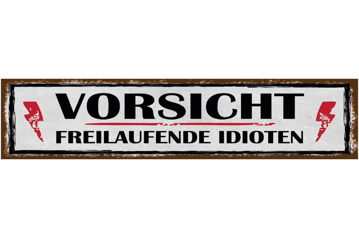 Schild Vorsicht Freilaufende Idioten Achtung Irren Haus 46 x 10 Blech od. Holz Im Angebot