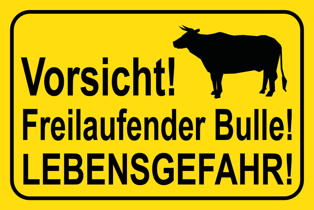 Schild Vorsicht Freilaufender Bulle Gefahr 12x18 / 20x30 / 30x40 Blech od. Holz Im Angebot