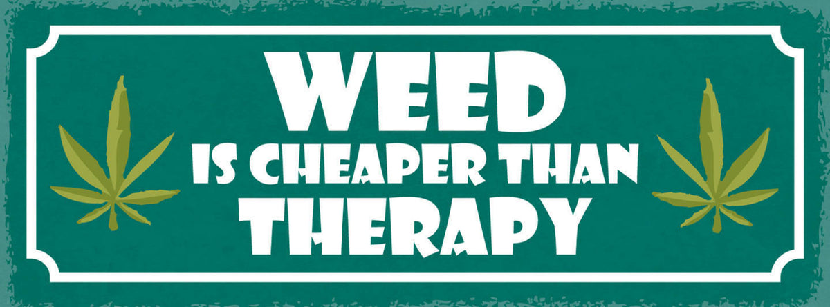 Schild Weed Is Cheaper Than Therapy Marijuana Hanf Therapie 27x10 Blech od.Holz Im Angebot