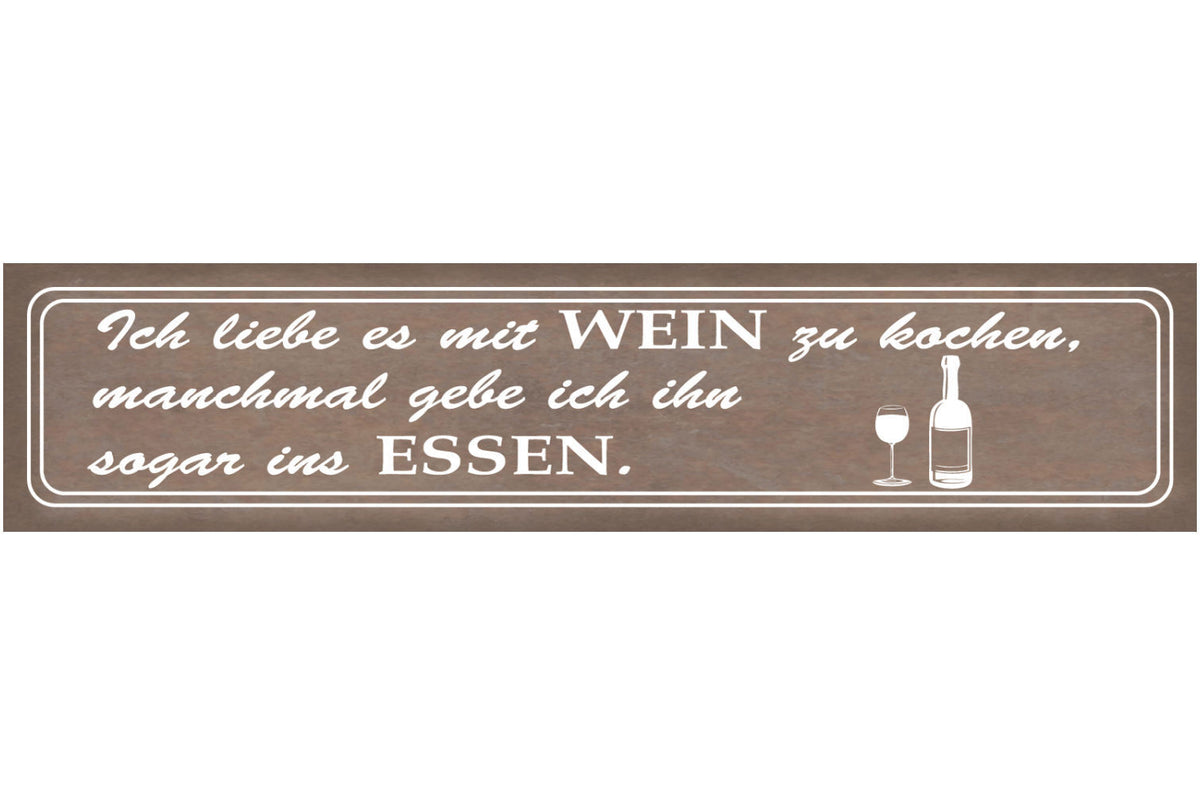 Schild Wein Kochen Essen Küche Koch Alkohol Glas Flasche 46 x 10 Blech od. Holz Im Angebot