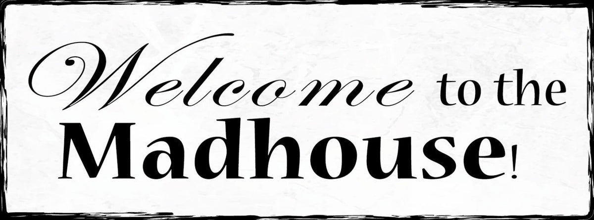 Schild Welcome To The Madhouse Irrenhaus Verrückt Irre Haus 27x10 Blech od.Holz Im Angebot