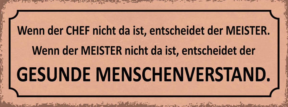 Schild Wenn Der Chef Nicht Da Ist Entscheidet Meister Gesunde Menschenverstand Im Angebot