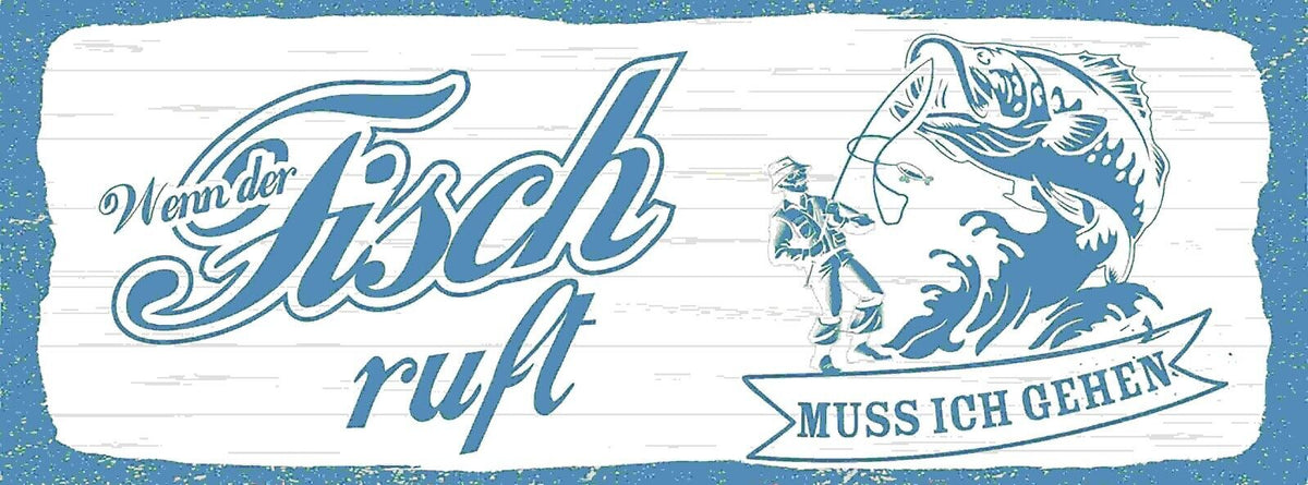 Schild Wenn Der Fisch Ruft Muss Ich Gehen Angler Fischen 27x10 Blech od.Holz Im Angebot