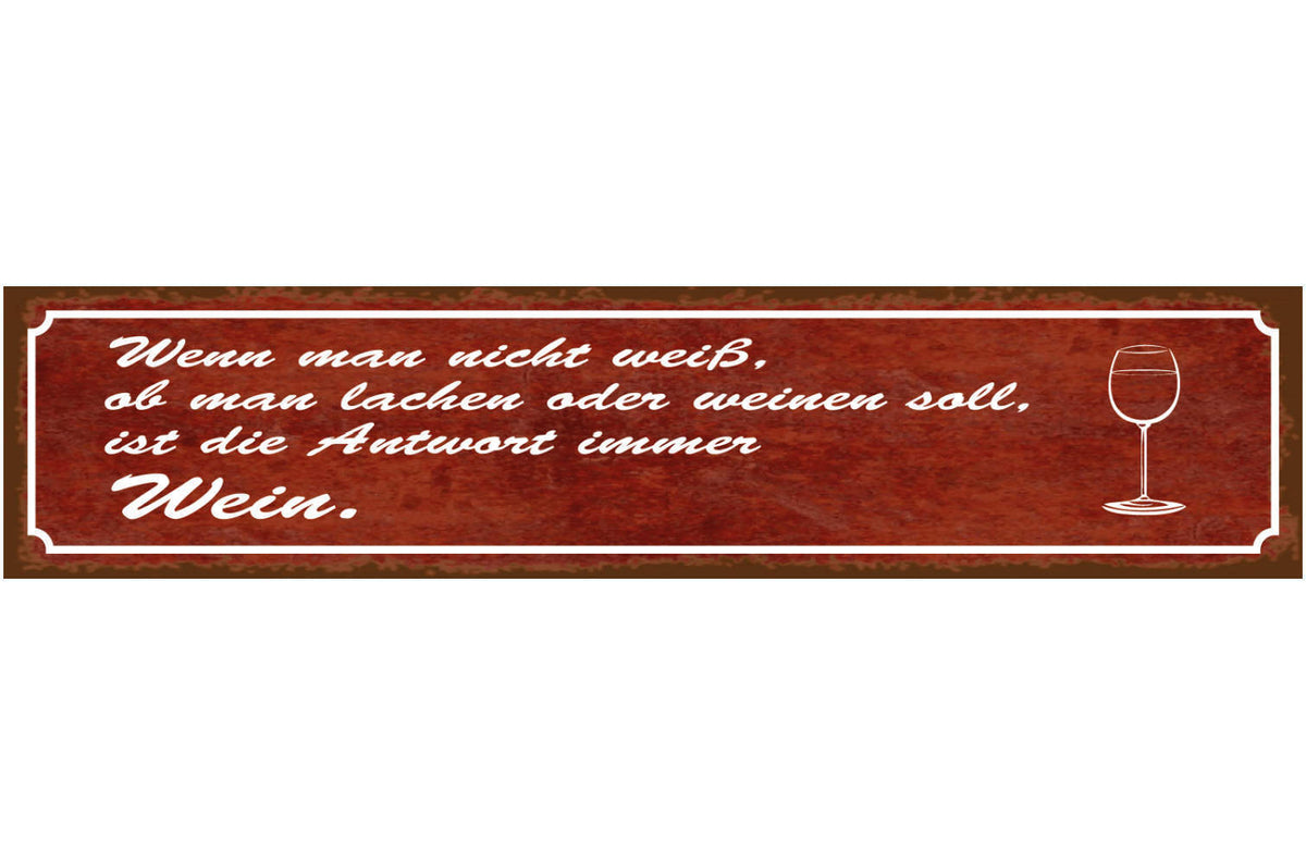 Schild Wenn Man Nicht Weiss Ob Lachen Weinen Antwort Wein 46 x 10 Blech od. Holz Im Angebot