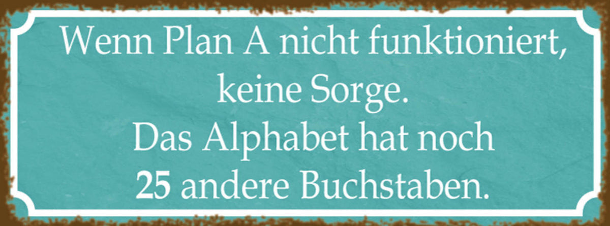 Schild Wenn Plan A Nicht Funktioniert Keine Sorge Alphabet 25 Buchstaben 27x10 Im Angebot