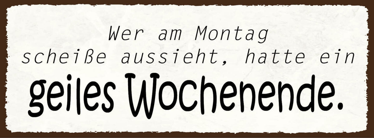 Schild wer am montag scheiße aussieht hatte ein geiles wochenende feiern 27x10 Im Angebot