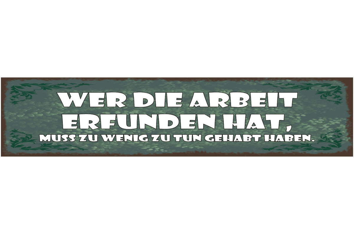 Schild Wer Die Arbeit Erfunden Hat Muss Zu Wenig Zutun Gehabt Haben 46 x 10 Im Angebot