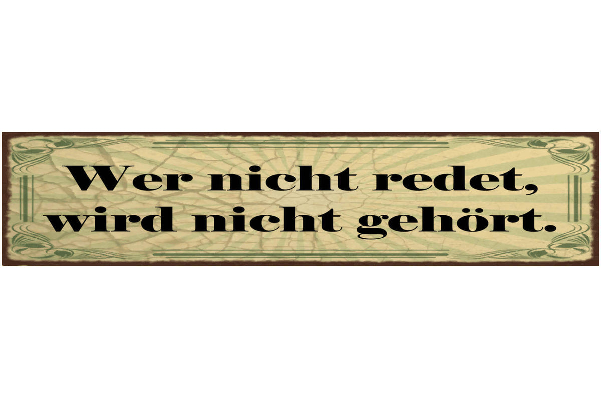 Schild Wer Nicht Redet Wird Nicht Gehört Reden Meinung 46 x 10 Blech od. Holz Im Angebot