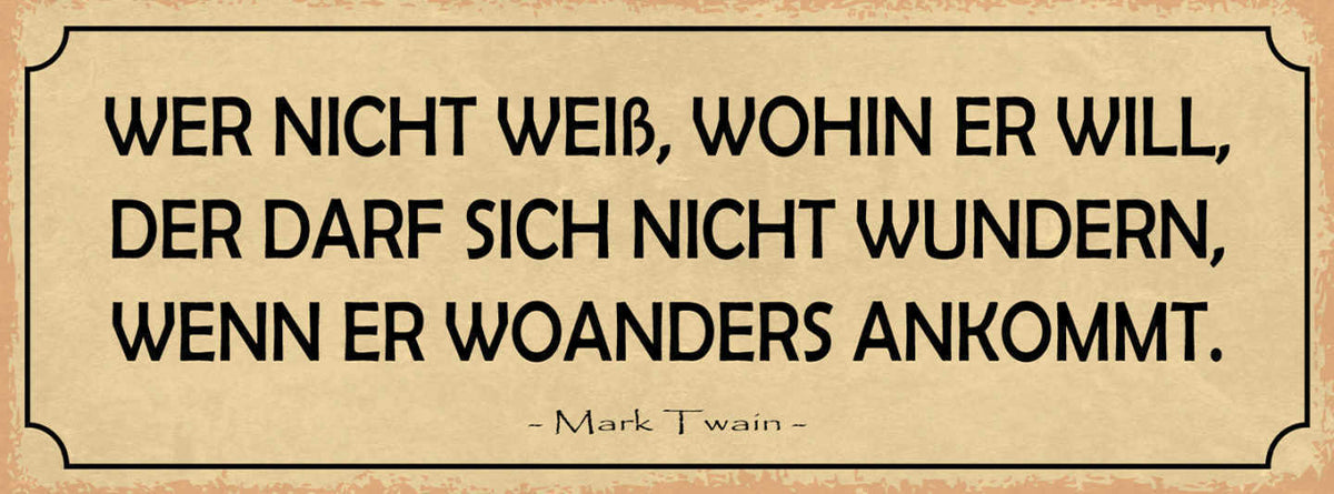 Schild Wer Nicht Weiß Wohin Darf Sich Nicht Wundern Wenn Woanders Ankommt Twain Im Angebot