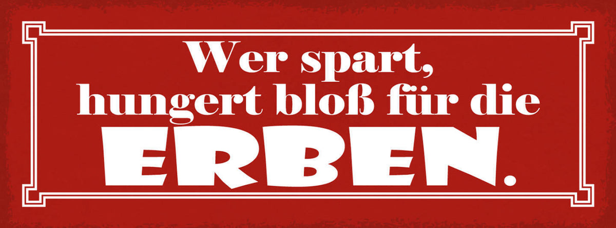 Schild Wer Spart Hungert Bloß Für Die Erben Geld Sparen 27x10 Blech od.Holz Im Angebot