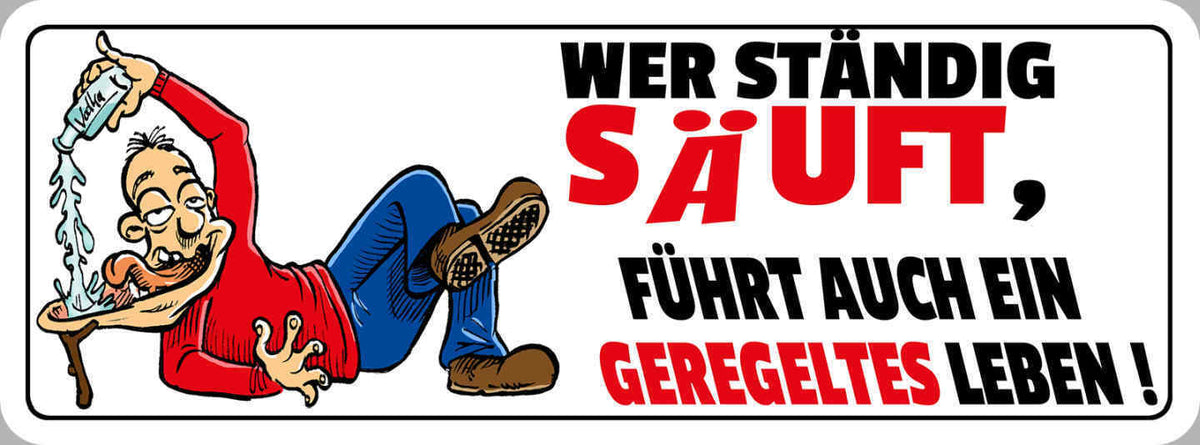 Schild Wer Ständig Säuft Führt Auch Ein Geregeltes Leben Alkohol Bier 27 x 10 Im Angebot