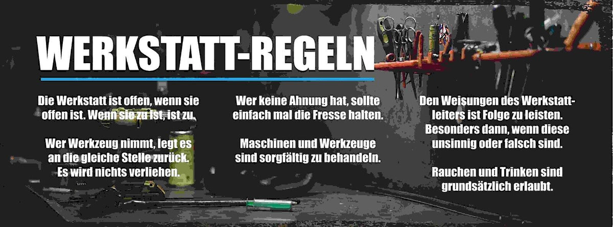 Schild Werkstatt Regeln Offen Zu Werkzeug Ahnung Weisungen 27x10 Blech od.Holz Im Angebot