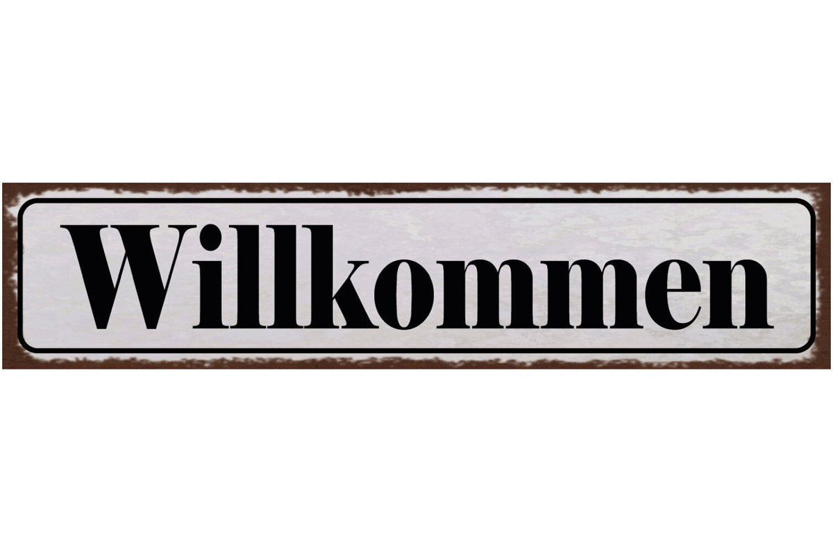 Schild Willkommen Geschäft Haus Wohnung Tür Hereinspaziert 46 x 10 Blech od.Holz Im Angebot