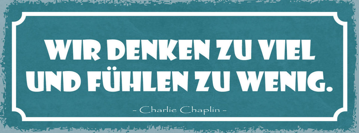 Schild Wir Denken Zu Viel & Fühlen Zu Wenig Charlie Chaplin 27x10 Blech od.Holz Im Angebot