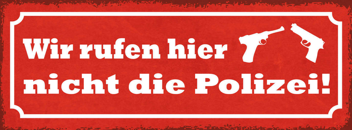 Schild Wir Rufen Hier Nicht Die Polizei Bullen Pistole 27x10 Blech od.Holz Im Angebot
