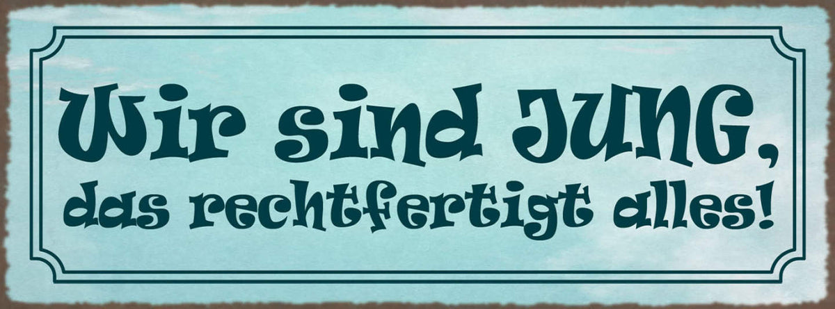 Schild Wir Sind Jung Das Rechtfertigt Alles Unerfahren 27x10 Blech od.Holz Im Angebot
