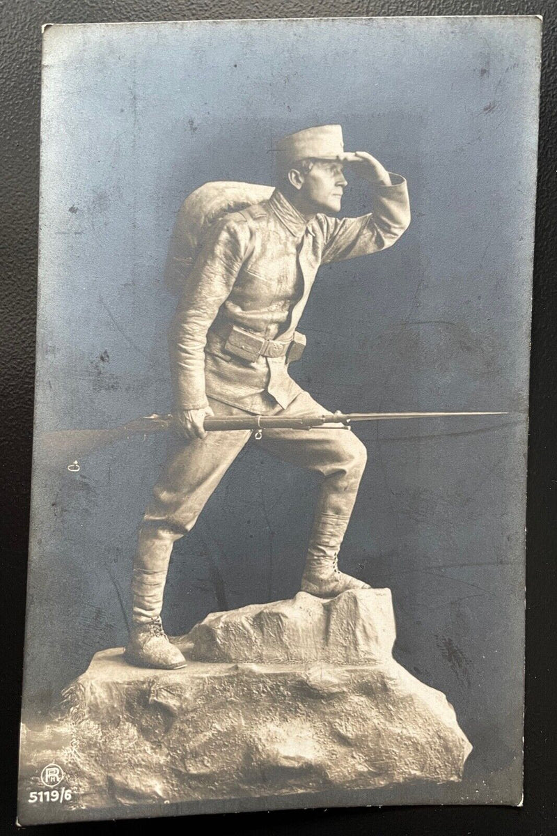 Statue Soldat Uniform Feldmütze Gewehr Rucksack Denkmal Militär Krieg 400589 TH Im Angebot
