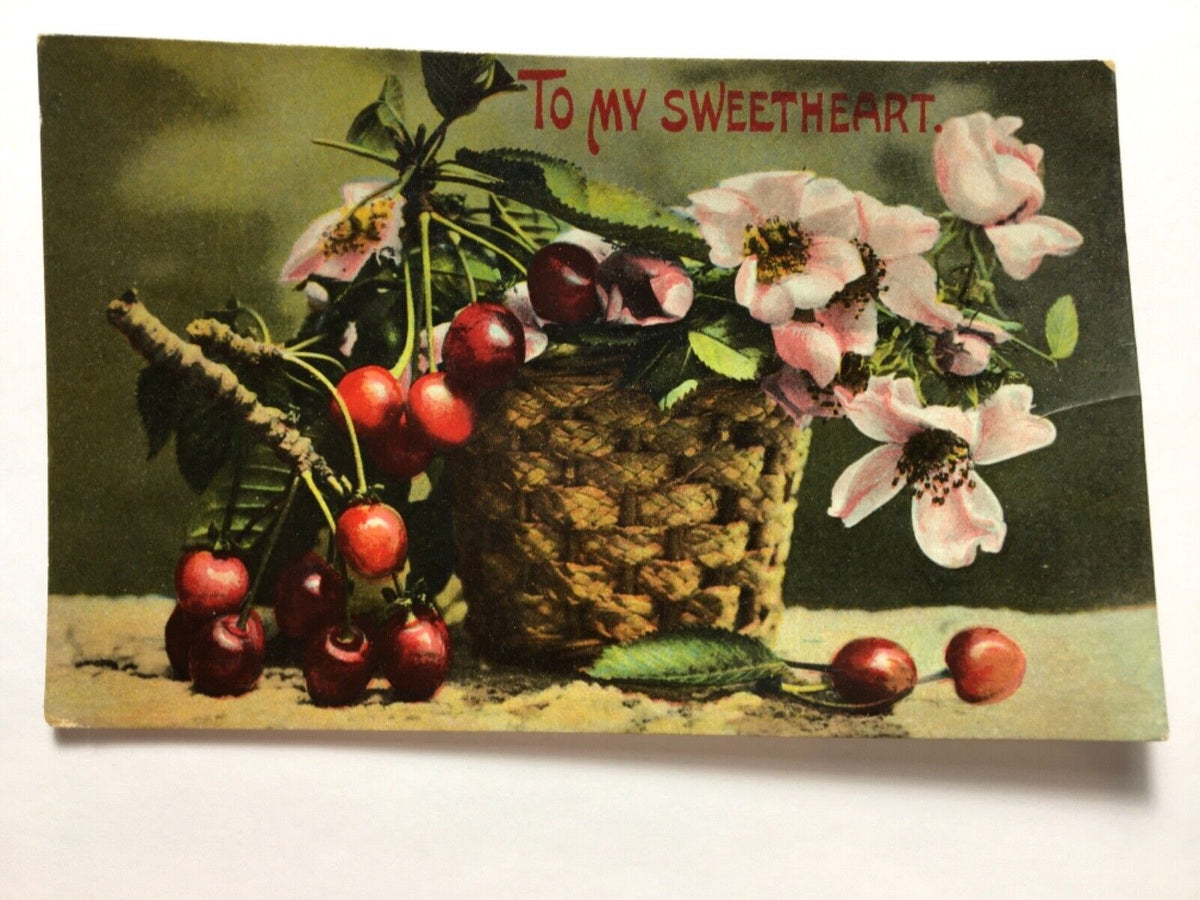To My Sweetheart - Korb mit Kirschen & Heckenrose - Künstlerkarte 110075 TH Im Angebot