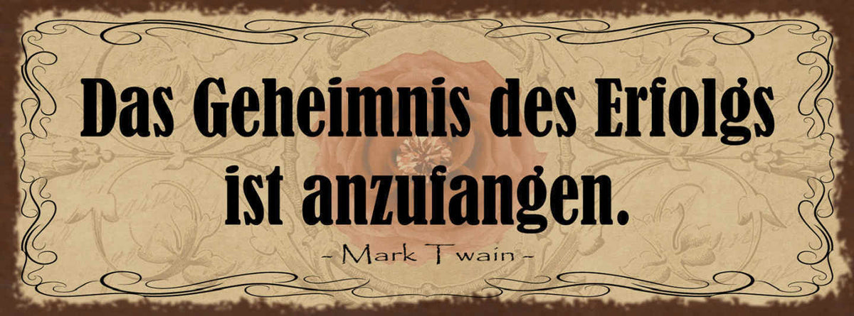 Schild Das Geheimniss Des Erfolgs Ist Anzufangen Mark Twain 27x10 Blech od.Holz Im Angebot