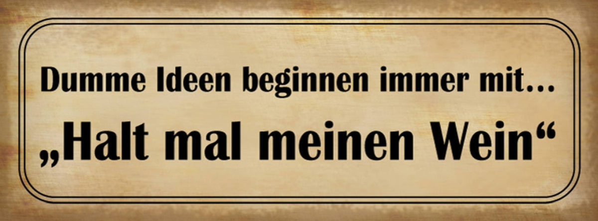 Schild Dumme Ideen Beginnen Immer Mit Halt Mal Meinen Wein 27x10 Blech od.Holz Im Angebot