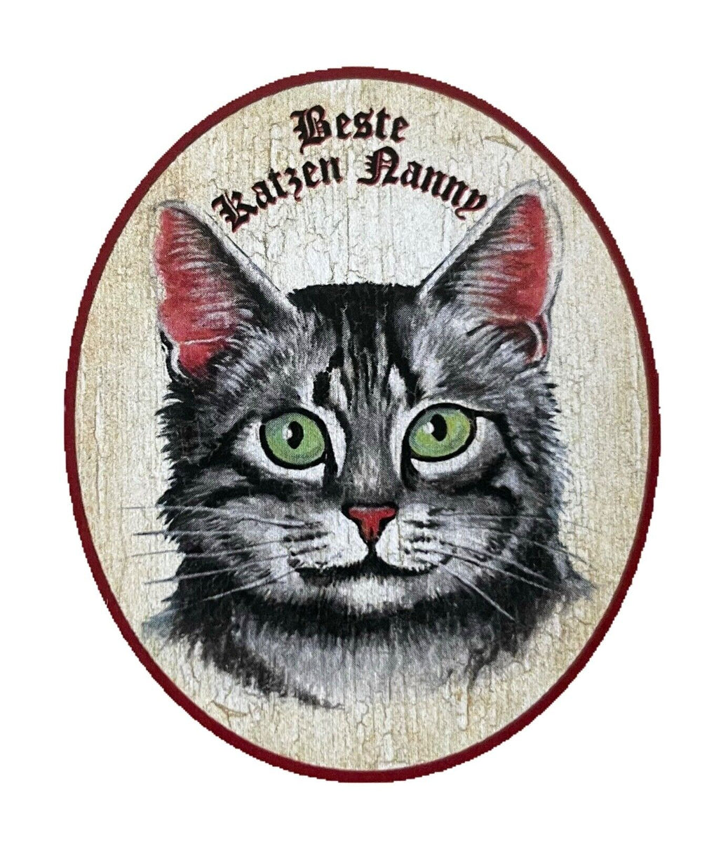 KuK Nostalgie Holzschild “Beste Katzen Nanny“ Katze Sitterin Tabby Getigert Grau Im Angebot