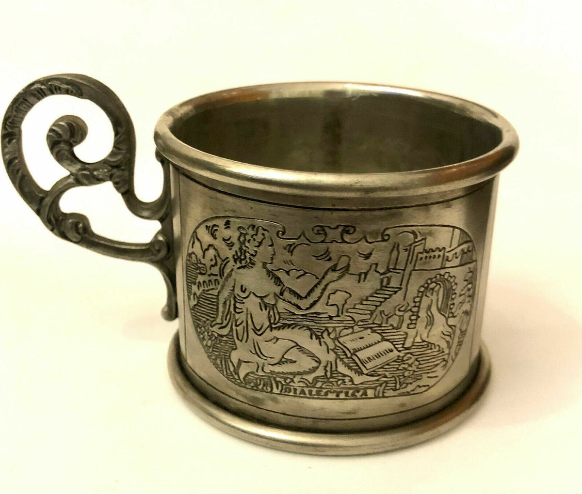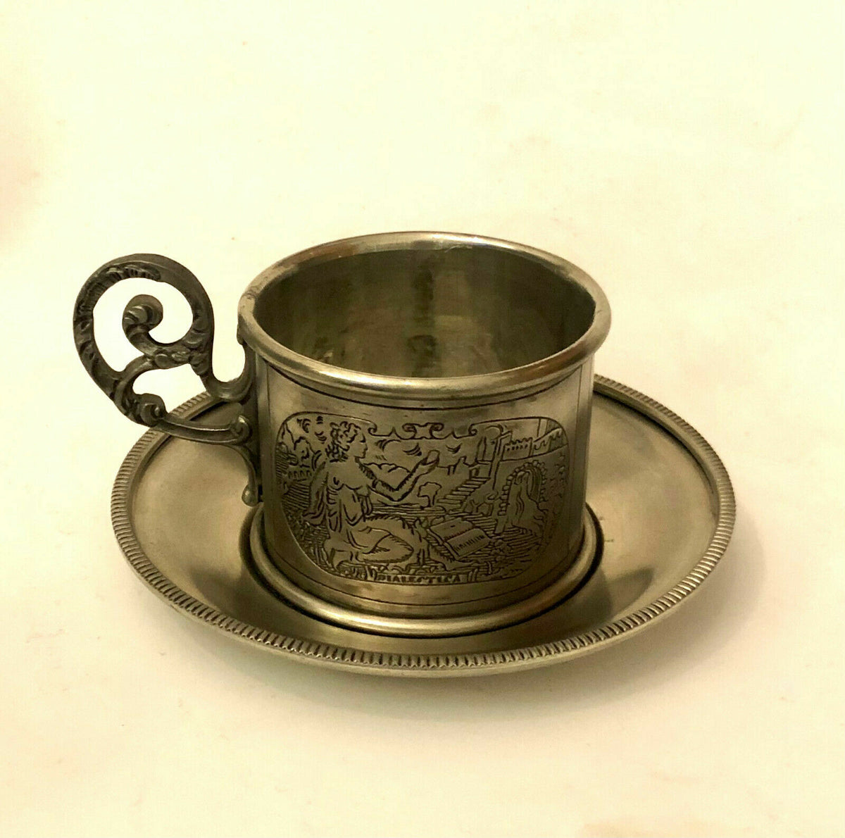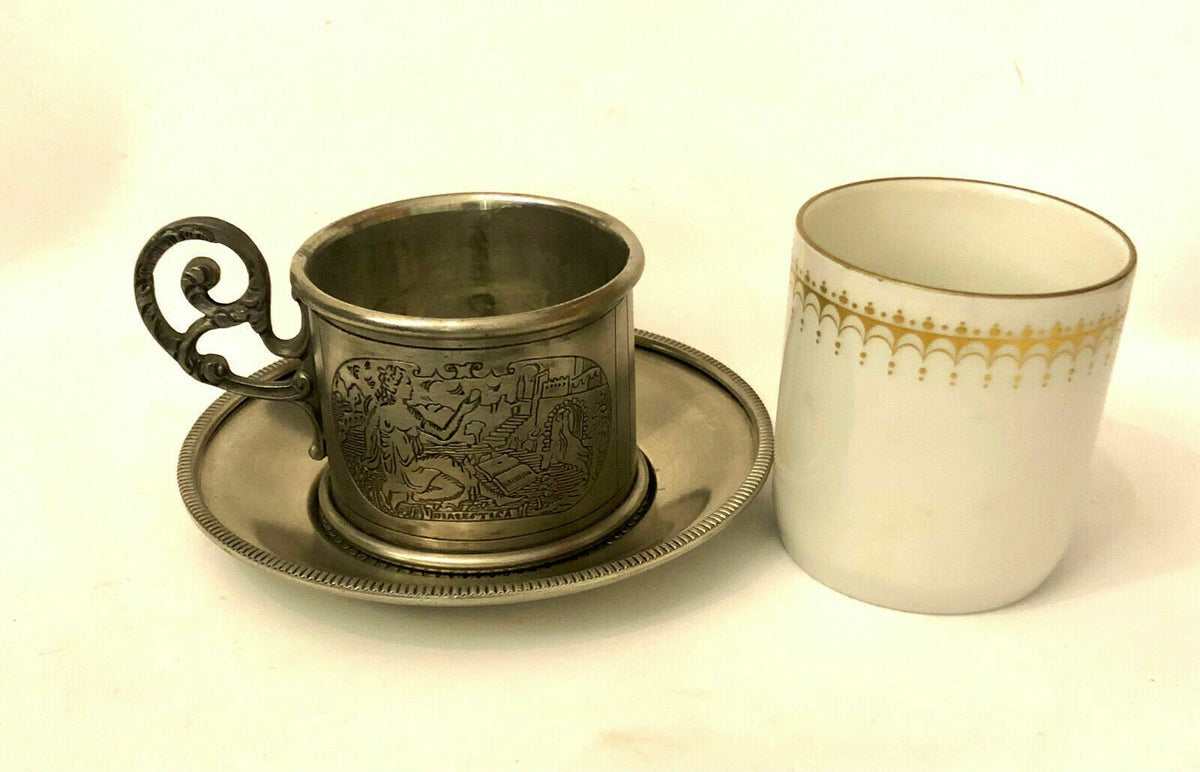 Mocca Tasse Kronester Porzelan Bavaria mit Fassung und Untertasse aus Zinn190033 Im Angebot