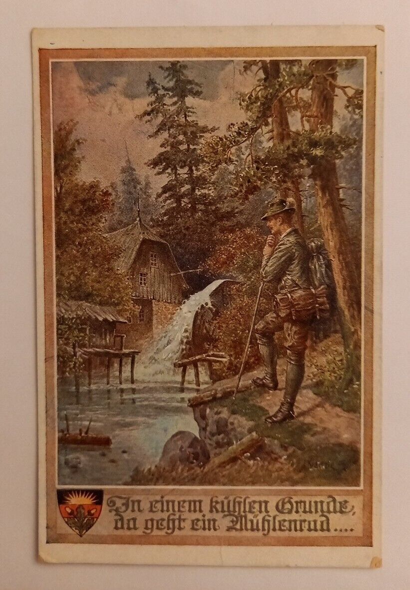 Künstlerkarte Jäger und Mühlenrad 600667A gr Im Angebot