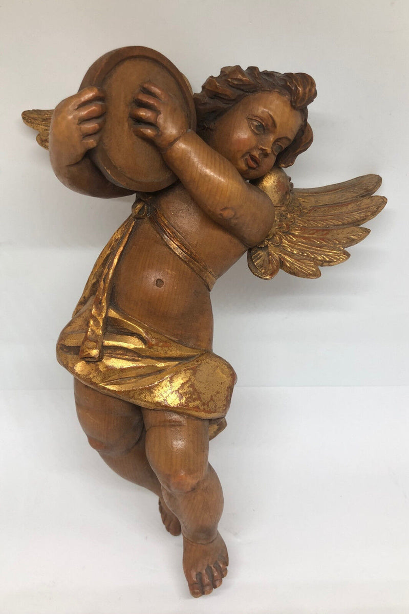 Holzengel Musikinstrument Trommel ca. 30 cm Blattgold um 1950 oder früher 25447 Im Angebot