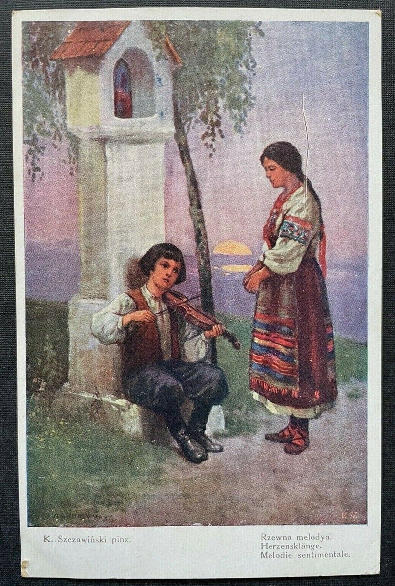 Malerei Herzensklänge K.Szczawinski Musiker Geige Frau Bildstock Sonne 400289 A Im Angebot