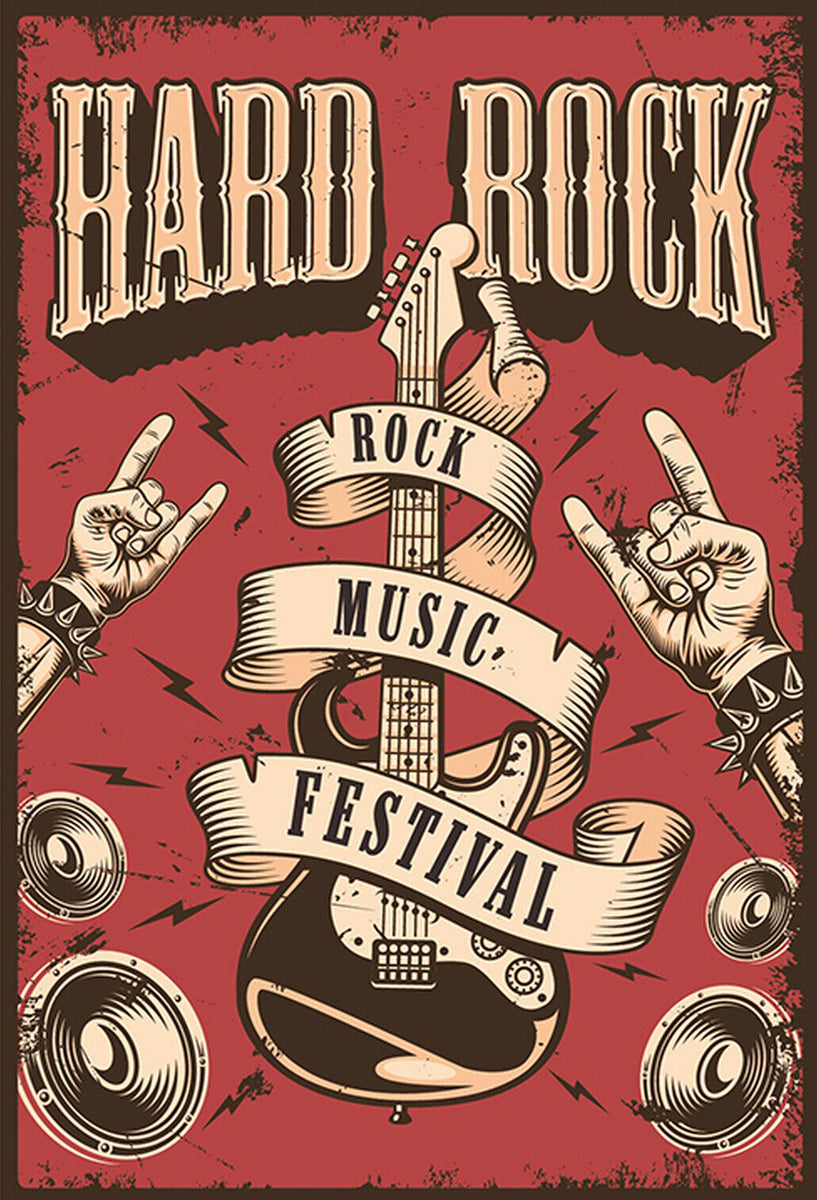 Schild Spruch Hard Rock Rock Music Festival Comic Musik JW Im Angebot